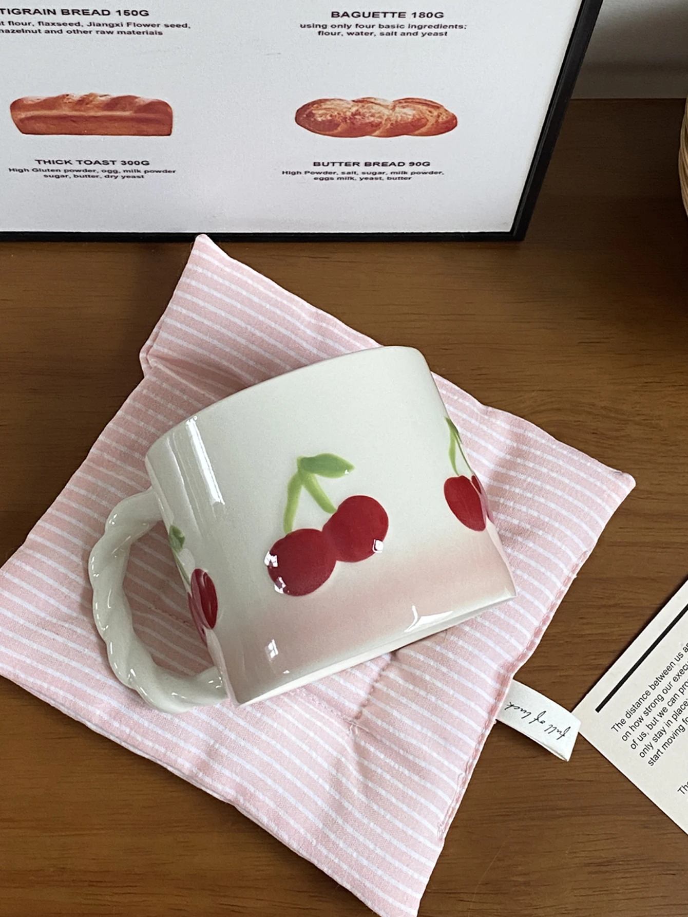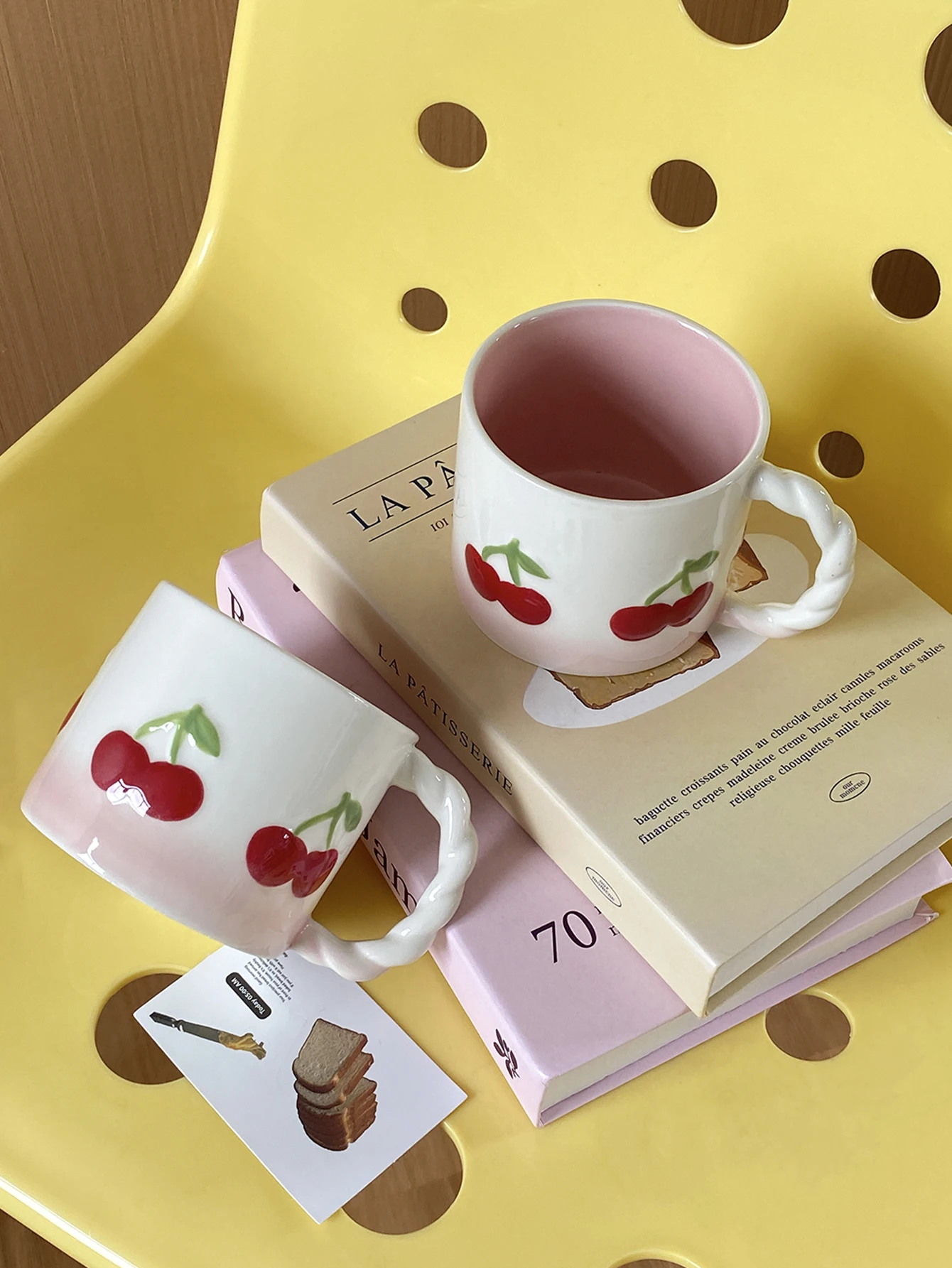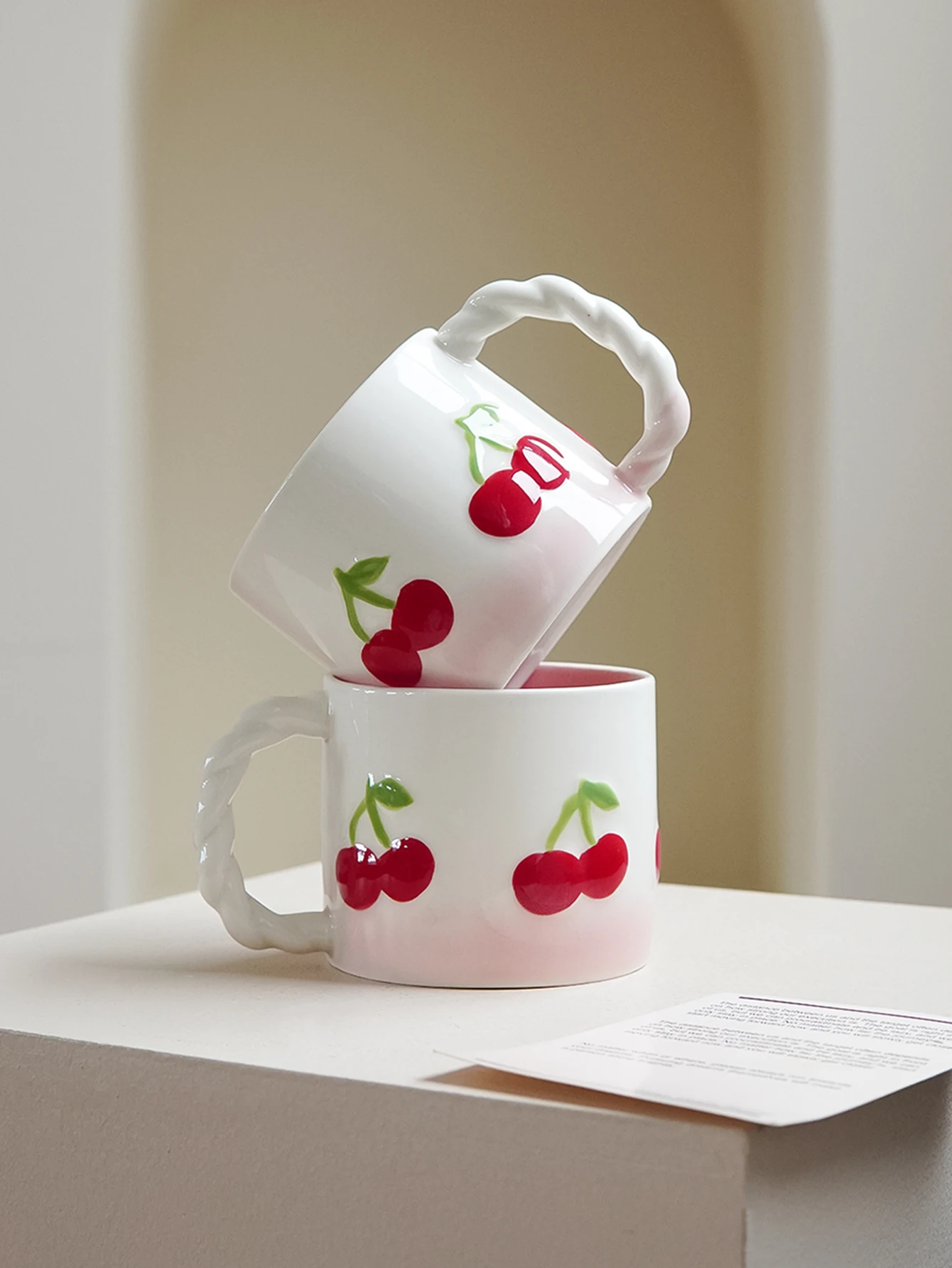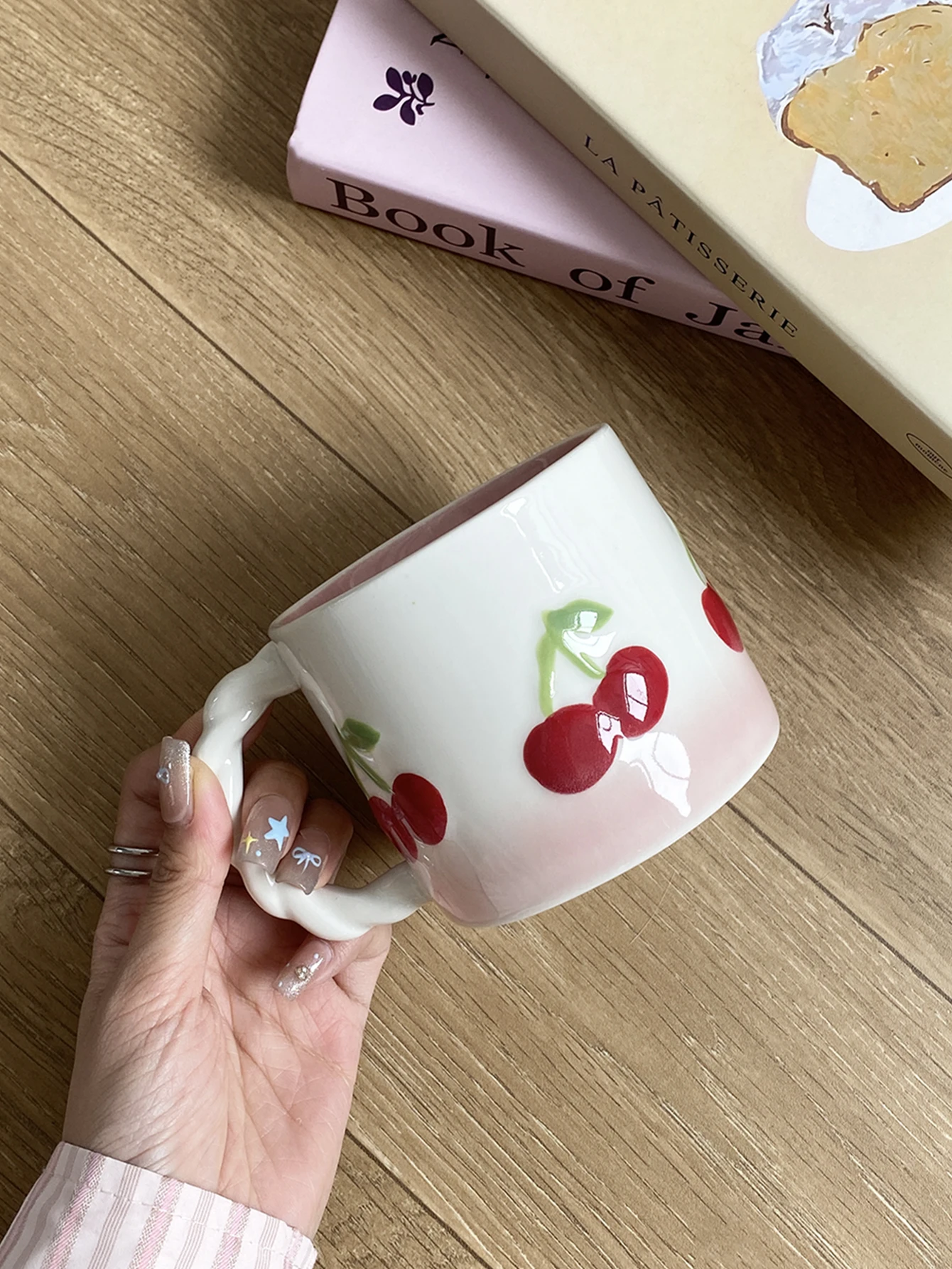 Pink Cherry Ceramic Mug, Twist Handle Ceramic Exquisite Pink Gradient Cup