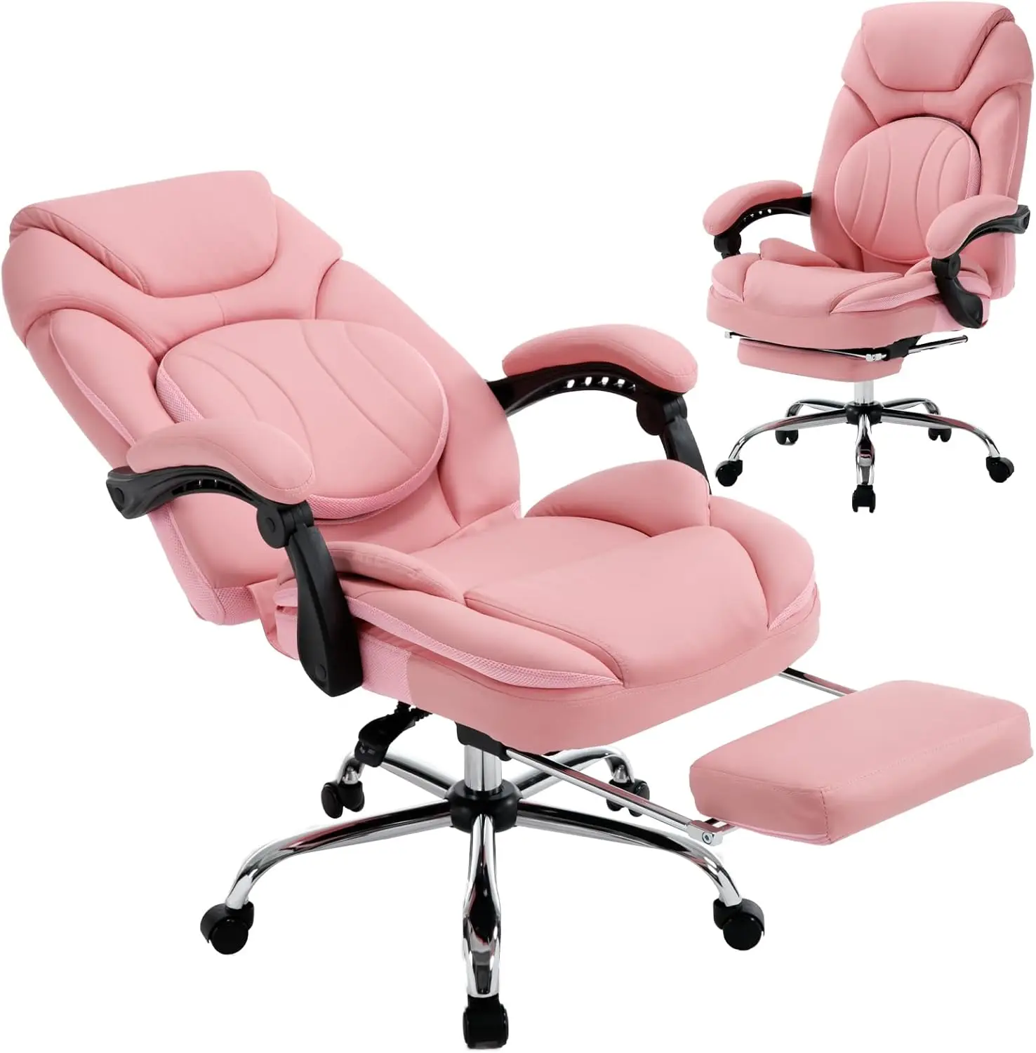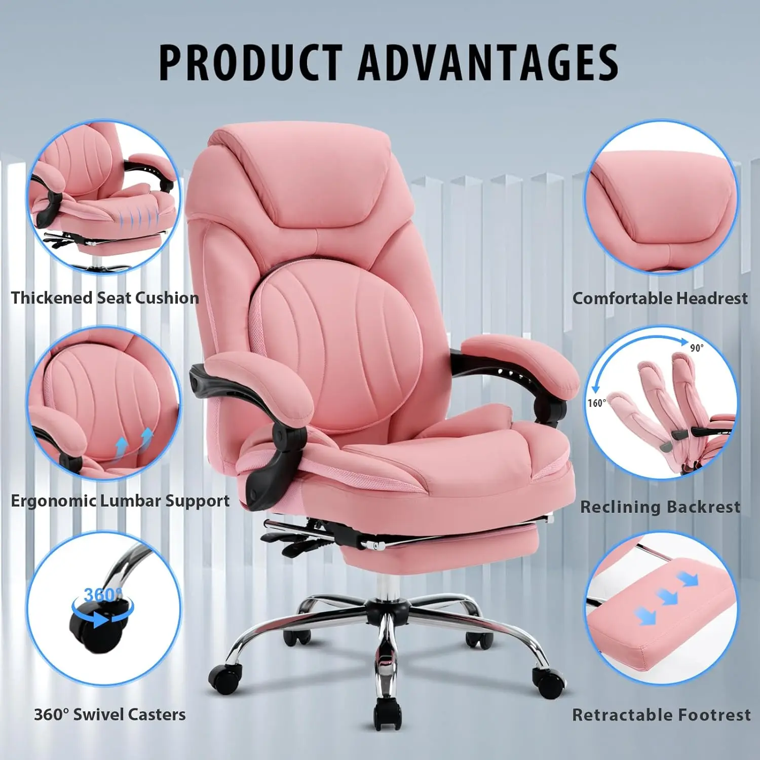 Ergonomic Recliner Executive Chairs With Footrest Back Support Wide Seat Comfortable Padded Reclining Chairs Pink 350 lbs