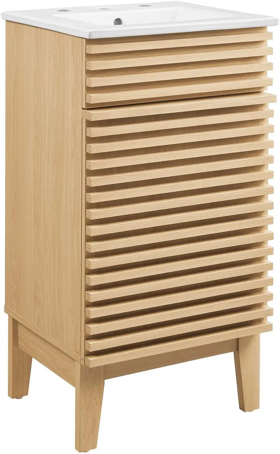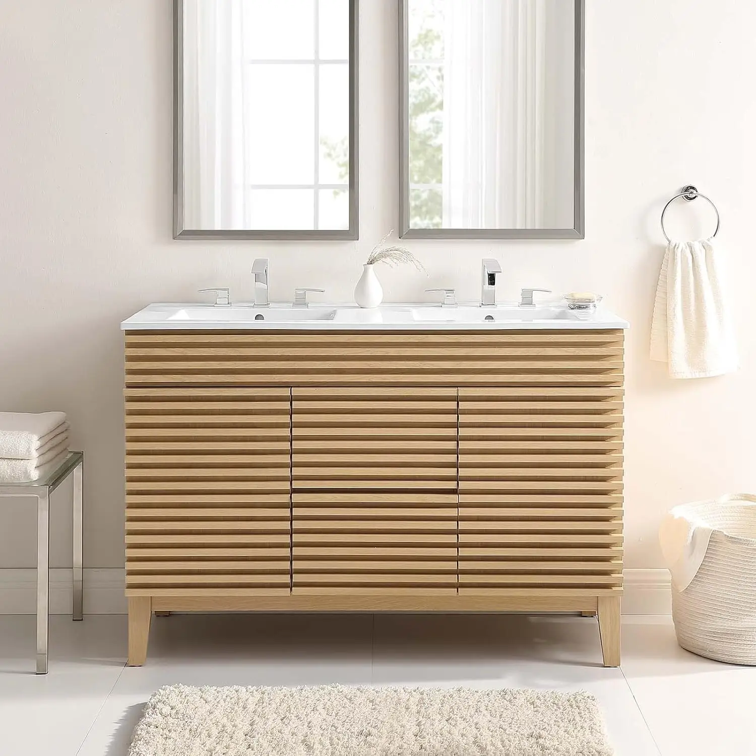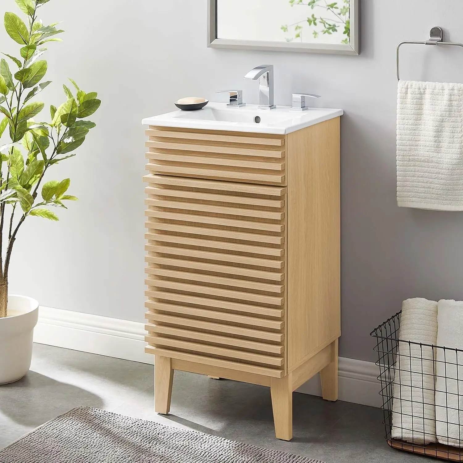 - MID-CENTURY BATHROOM VANITY - Bring mid-century intrigue and modern style to a bathroom or powder room with the organic aesthetic. clean lines. and retro profile of this sink vanity