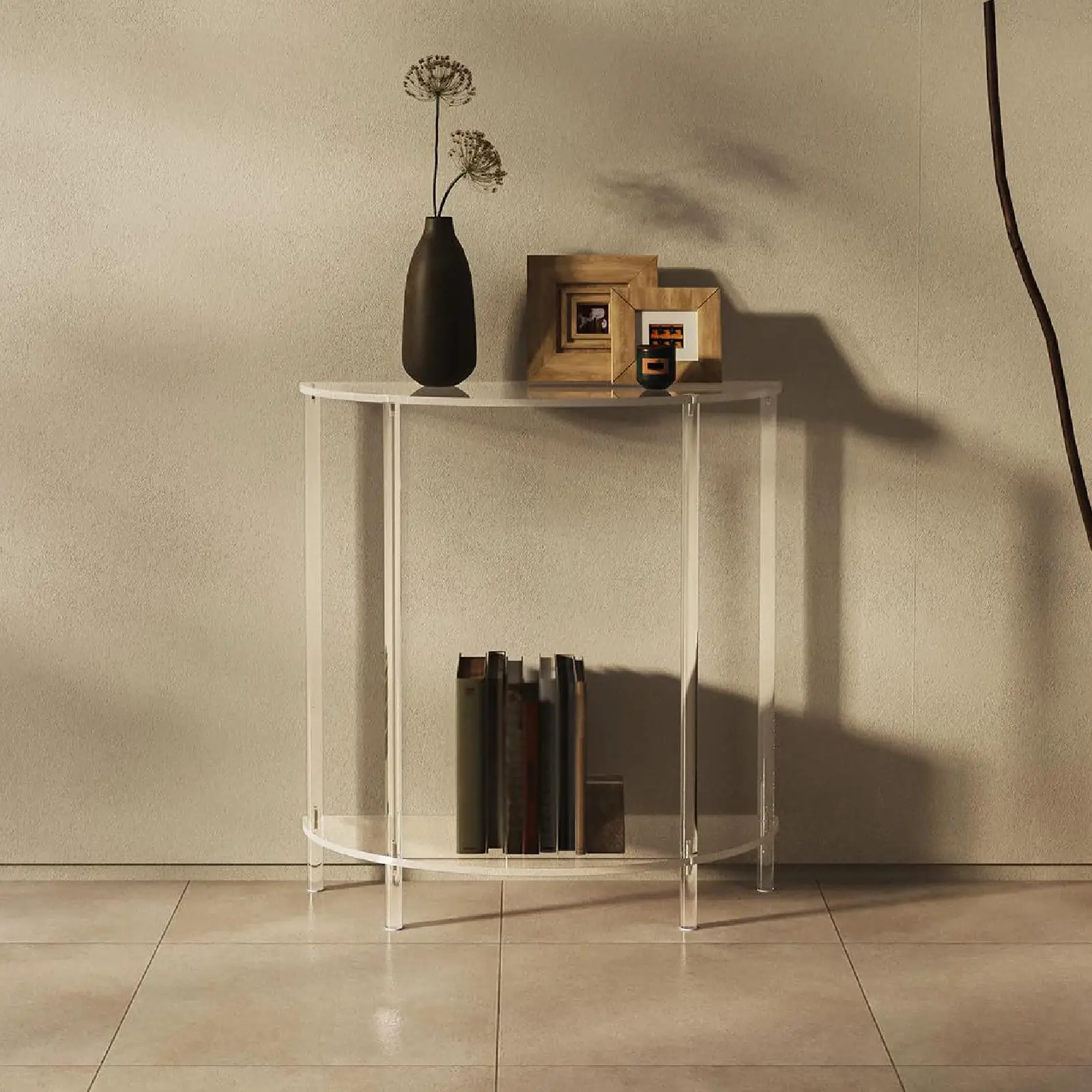 【Versatile Designã€? This two tier acrylic semi oval side table is great for enhancing the decor of your living room. bedroom. or bedside. Its simple and modern design makes it an ideal addition to any home setting