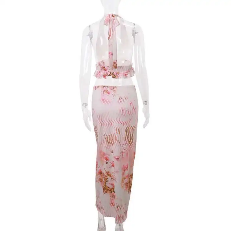 Sexy Party Two Piece Set Deep V Crop Top Midi Skirts Bodycon 2 Pieces Set
