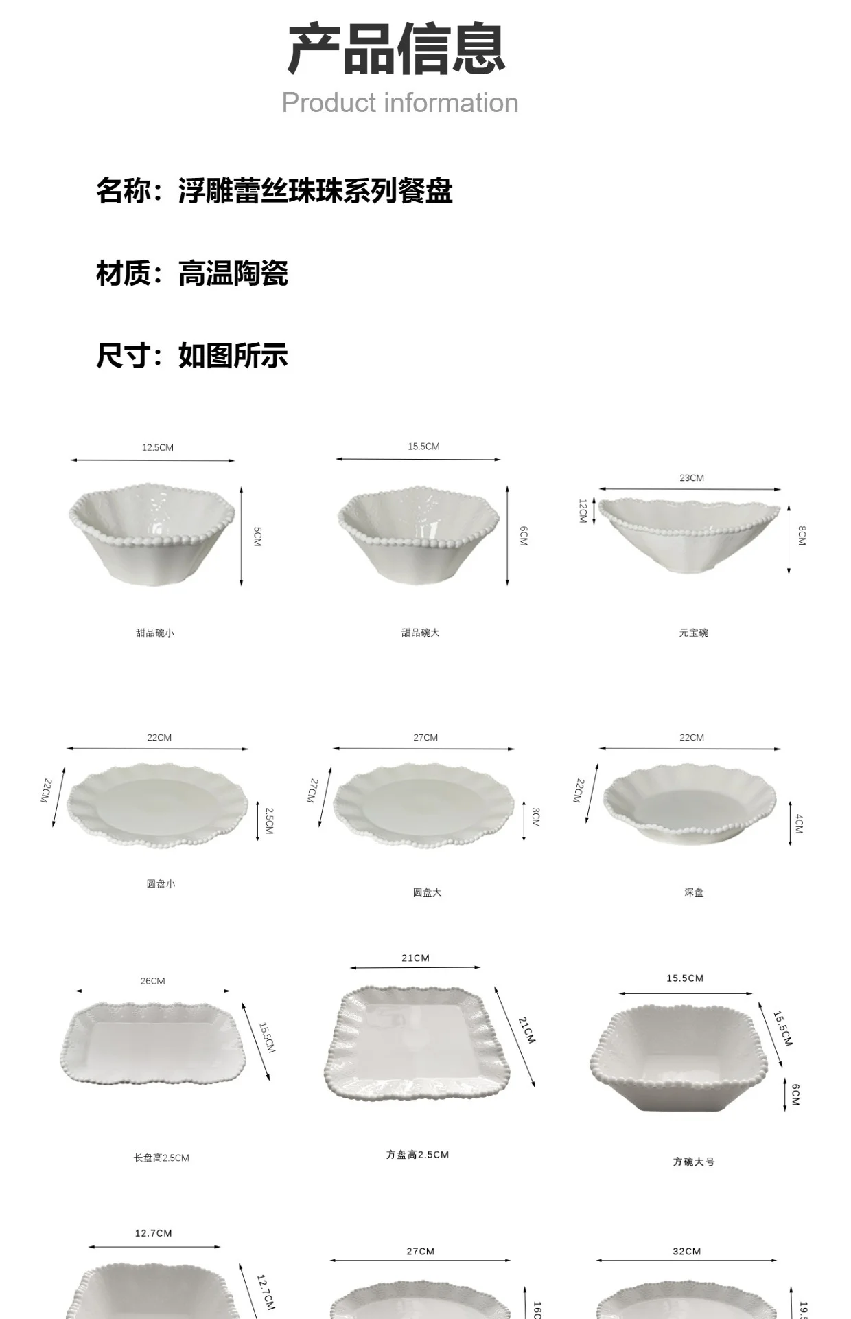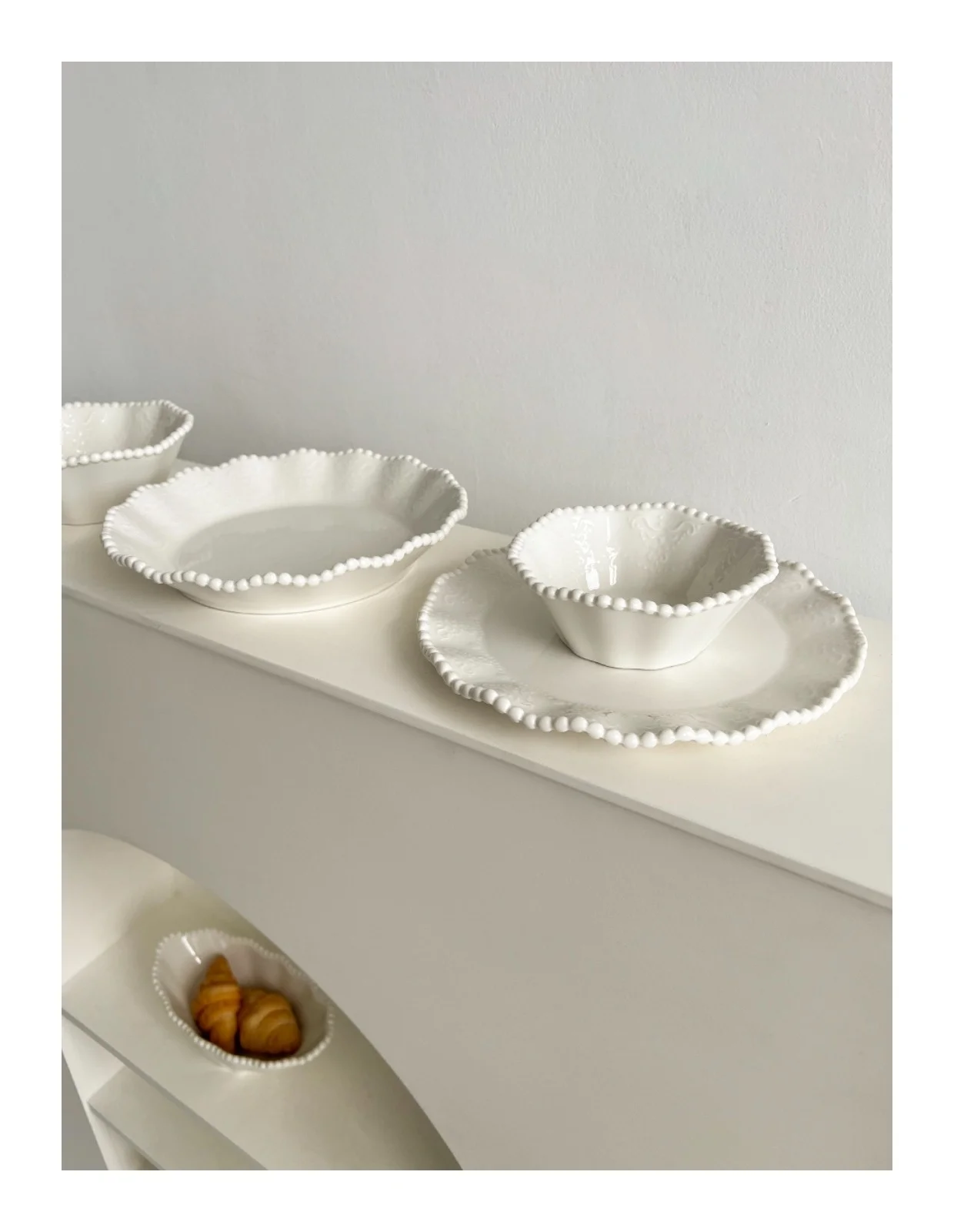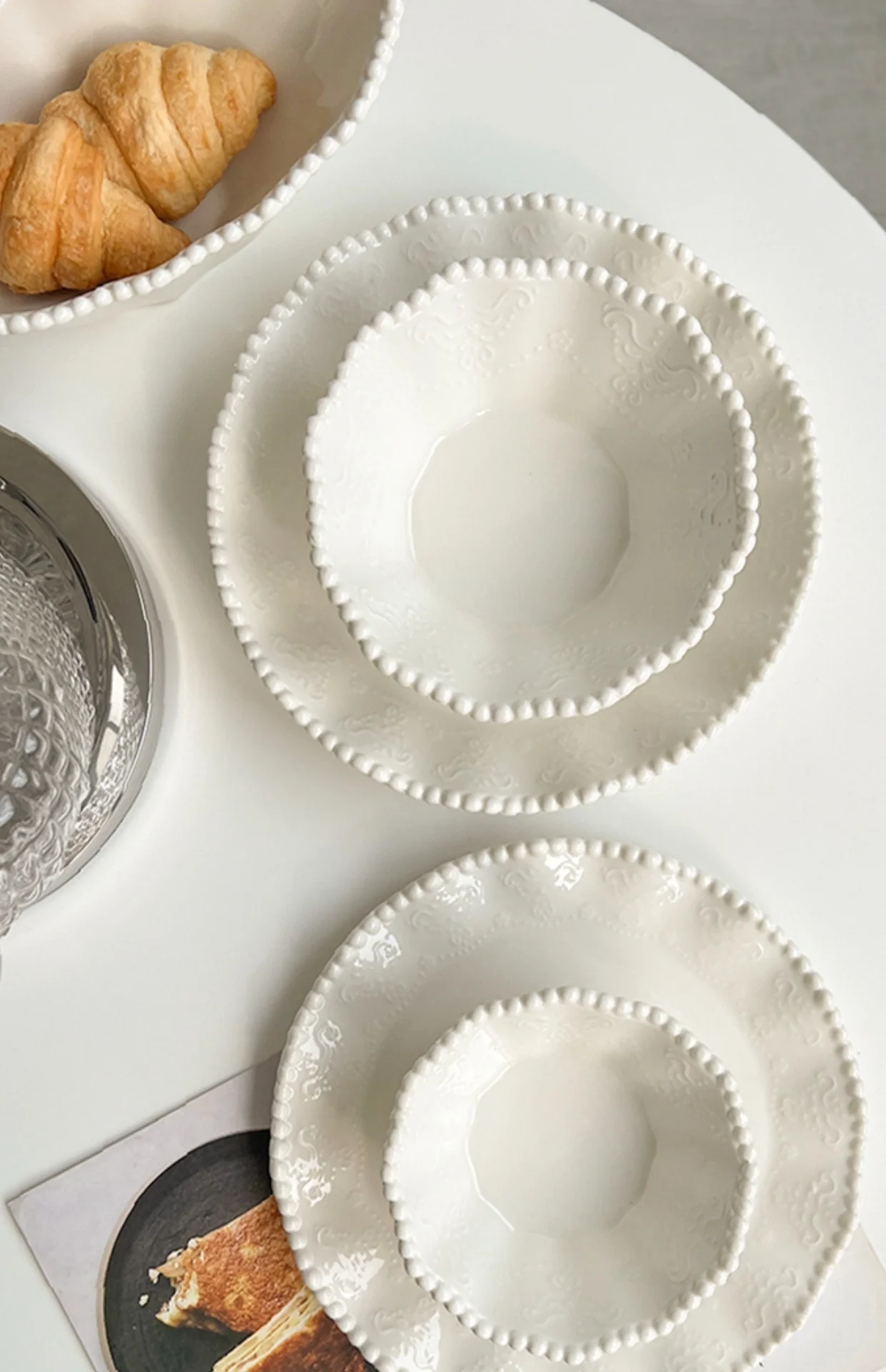 Ceramic Pearl Plate Breakfast Sense Bow Tableware Dessert Bowl Dish For Household