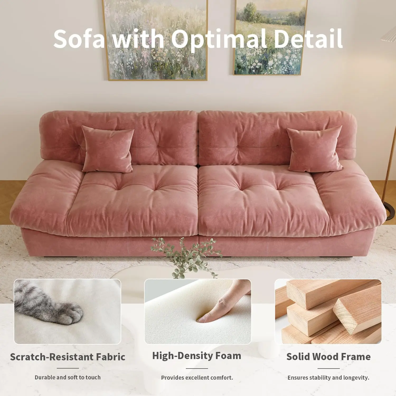 - 👪【Modern Living Room Sofa 】The finishing material made of high-grade Sanded Velvet. it is soft to the touch. durable. flexible. and will not wrinkle. And what'more. The pet hair is difficult to blend with the frosted cloth. and it is easy to clean it off with a brush or vacuum cleaner. if this sofa are contaminated with dust or liquid. and can be cleaned up by simply wiping them with a damp cloth.