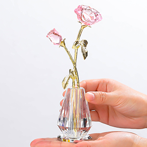 - 【Material】Crystal rose is made of high quality k9 crystal. come with crystal vase and metal long stem. Crystal flower figurines have a charming appearance. clear and vivid. never fading and long usage time.