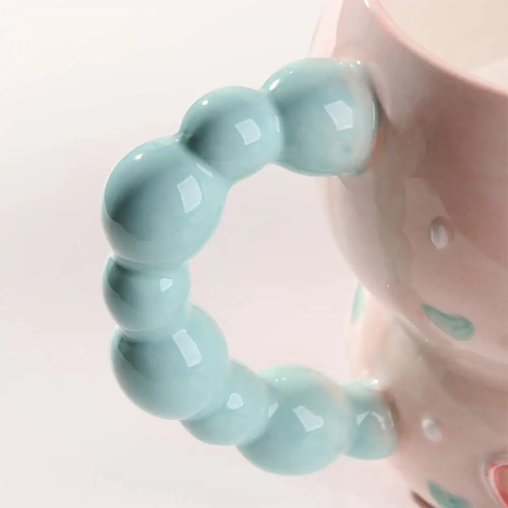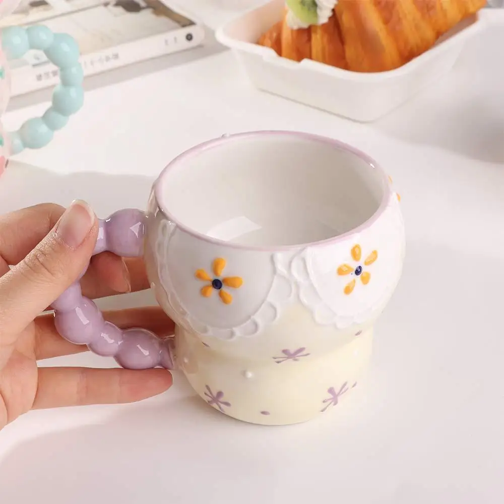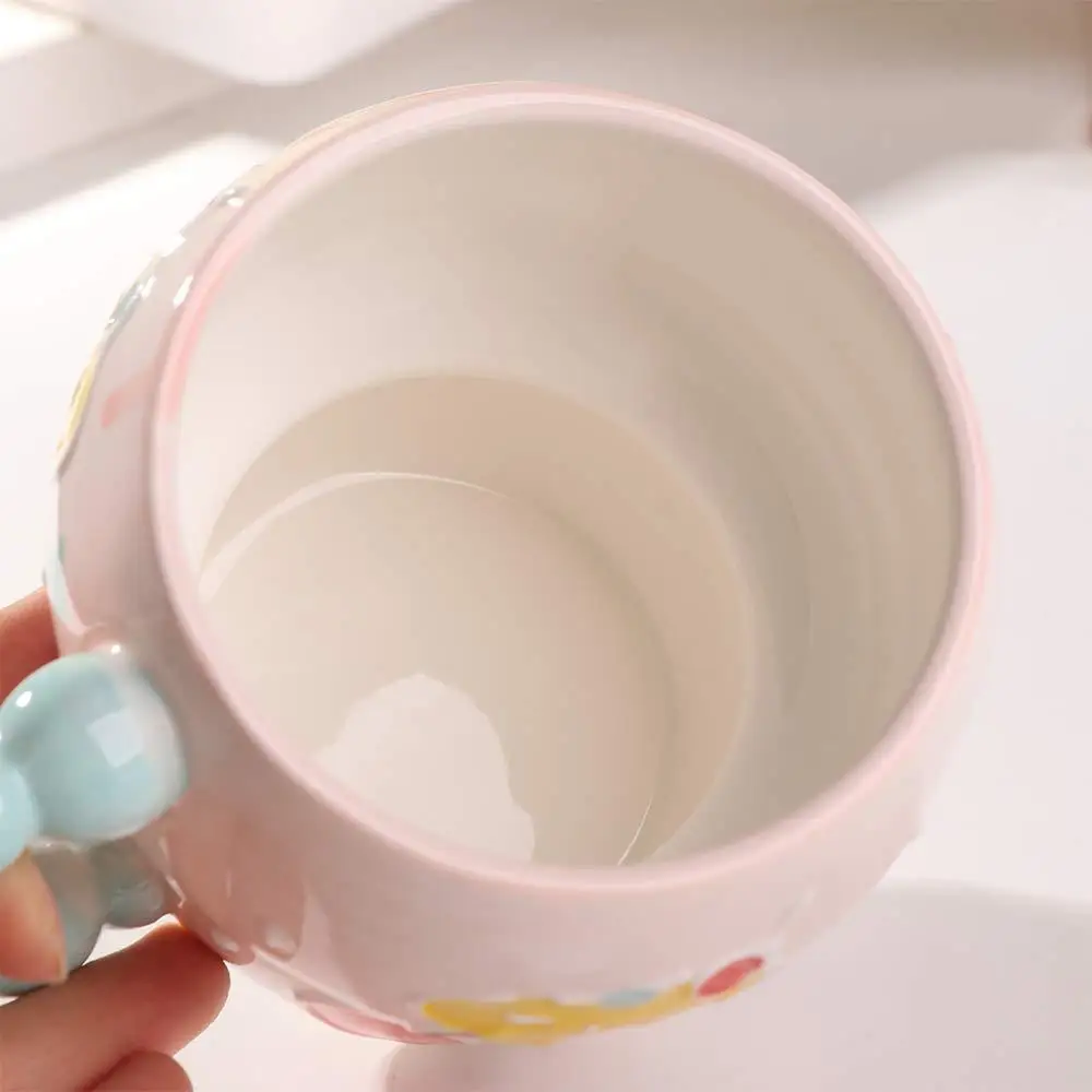 Cute Ceramic Breakfast Cup Hand Painted Large Capacity Floral Pattern Cup