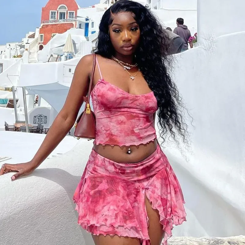 �Fashionable Design : This camisole and skirt set boasts a trendy mesh print design. perfect for adding a touch of elegance to any outfit.