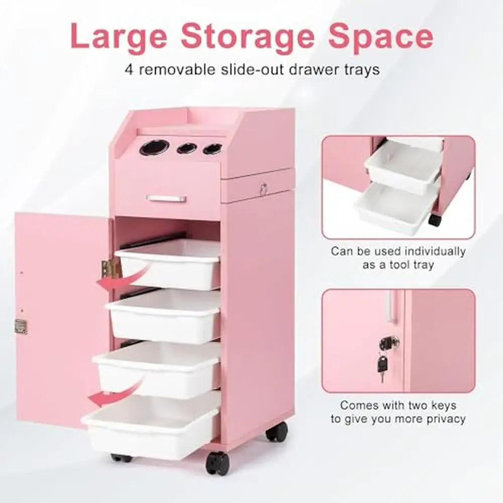 This salon storage trolley has 2 keys to help you store personal items or keep tools and supplies safe while you're on the go.
