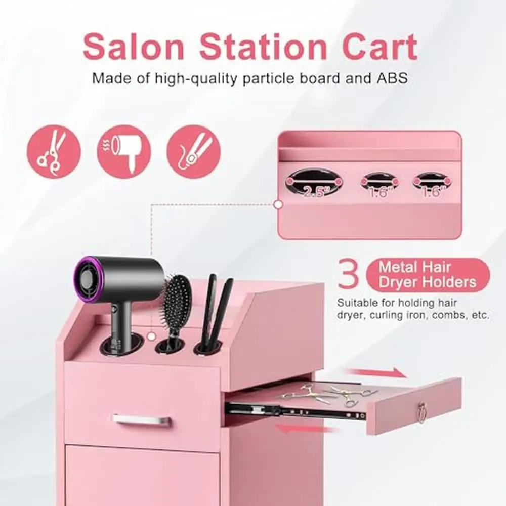 Our beauty salon cart has 3 holes for different grooming tools. such as large curling irons. blow dryers and regular curling irons. Stainless steel material can effectively prevent rust. 3 holes are convenient and enough for your daily work.