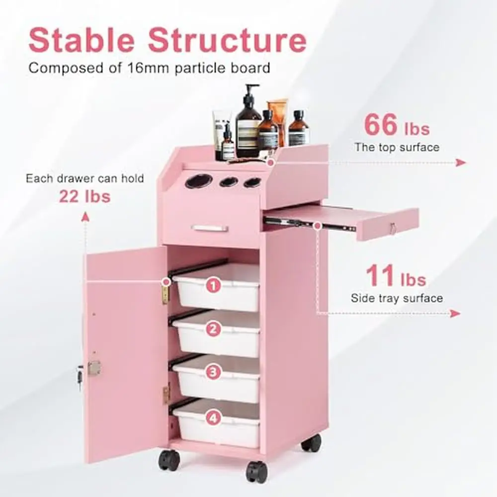 This salon trolley has 4 drawers. and these tray style drawers will give you plenty of room for a variety of grooming tools and supplies. The drawer is made of custom ABS material. which is more durable and not easy to damage.