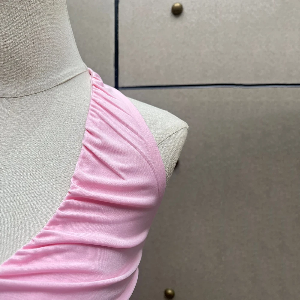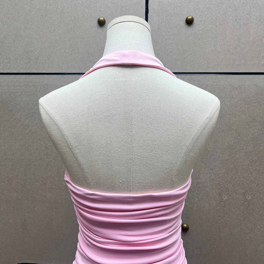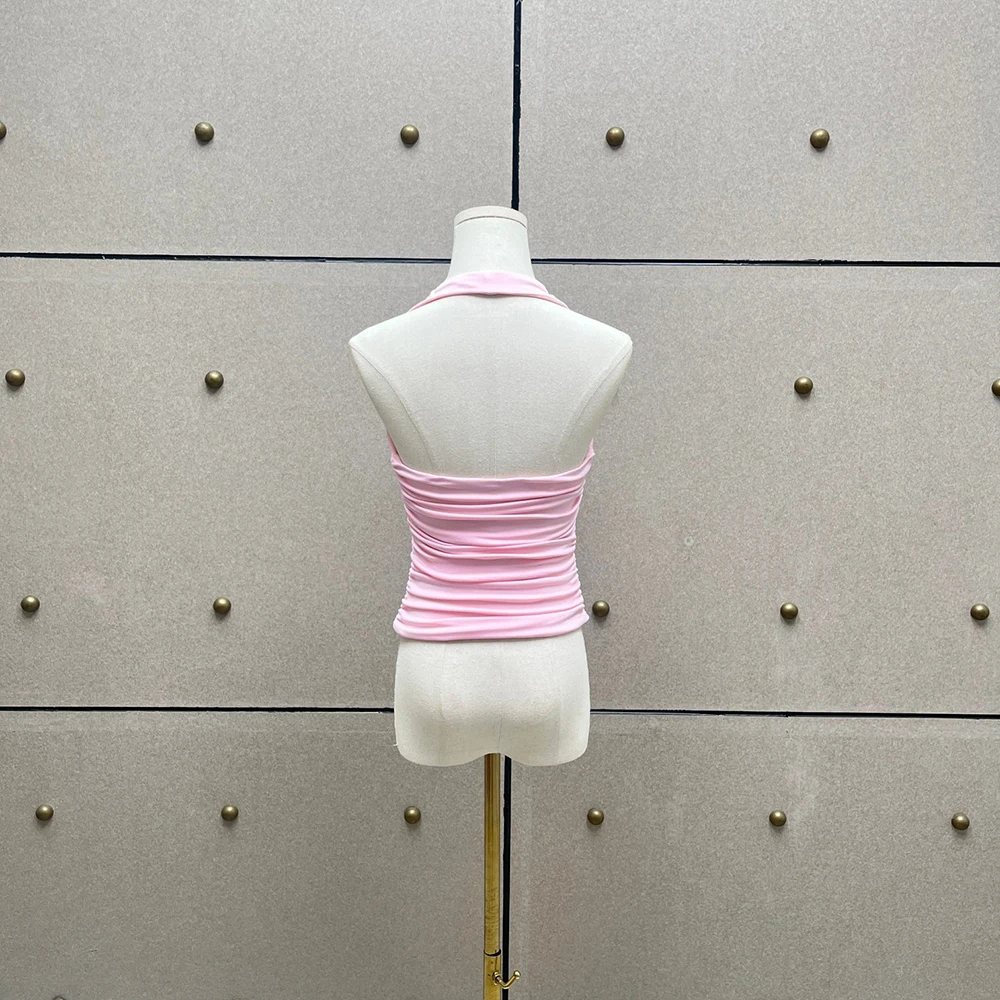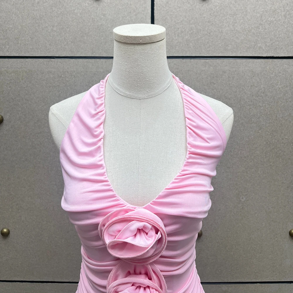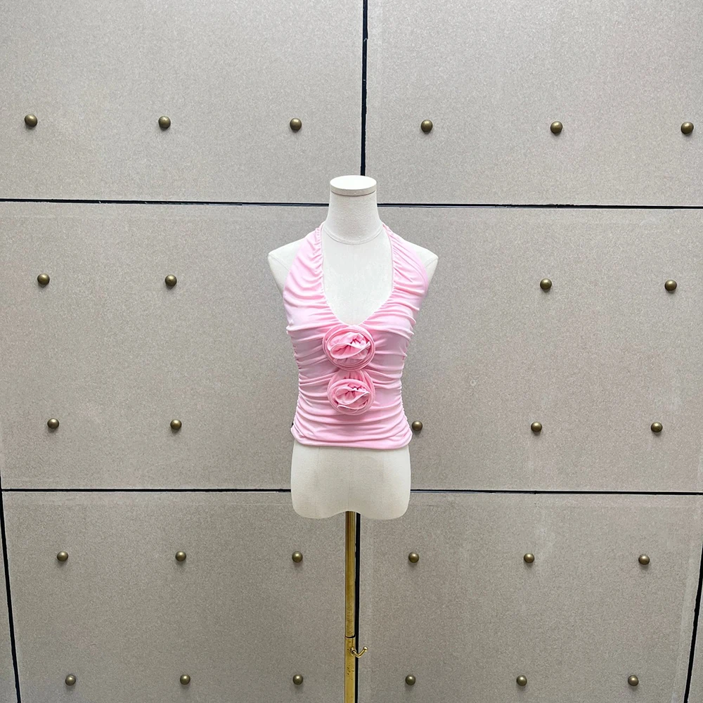 Handmade Floral Pink Women Sexy Backless Elegant Neck Sleeveless Tank Top