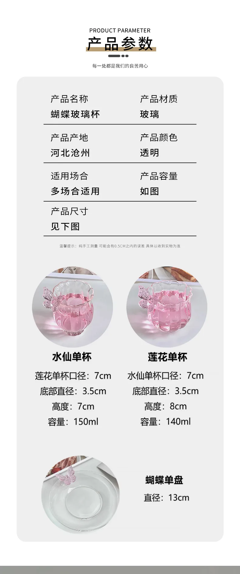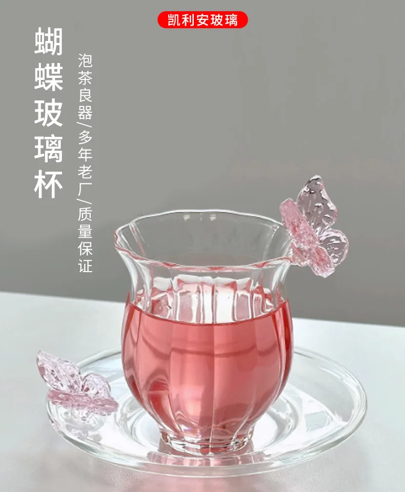 Glass Butterfly Cup Handmade Creative Transparent Tea Cup Heat-Resistant