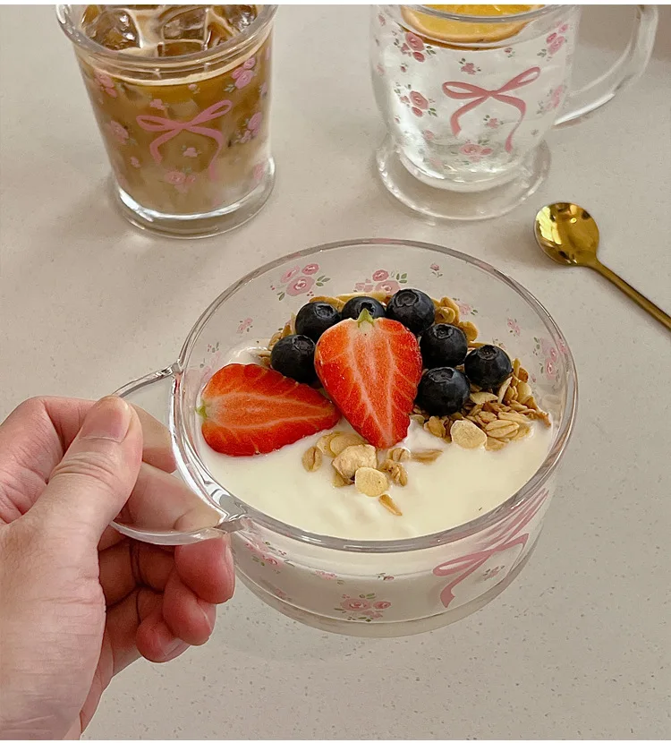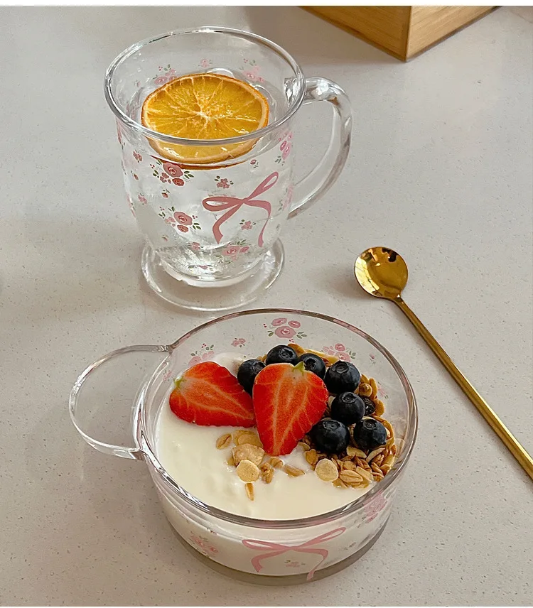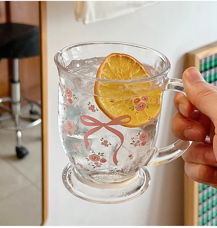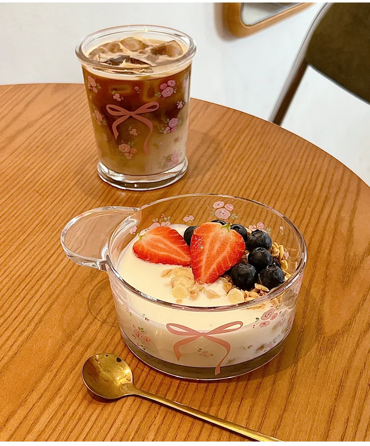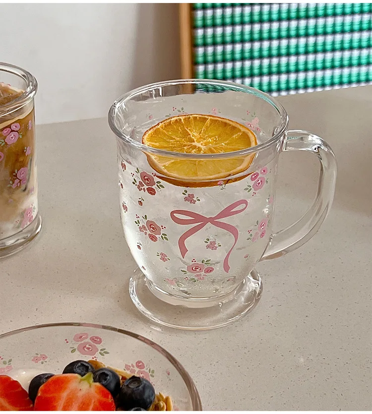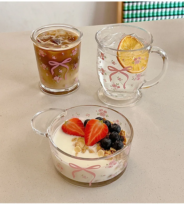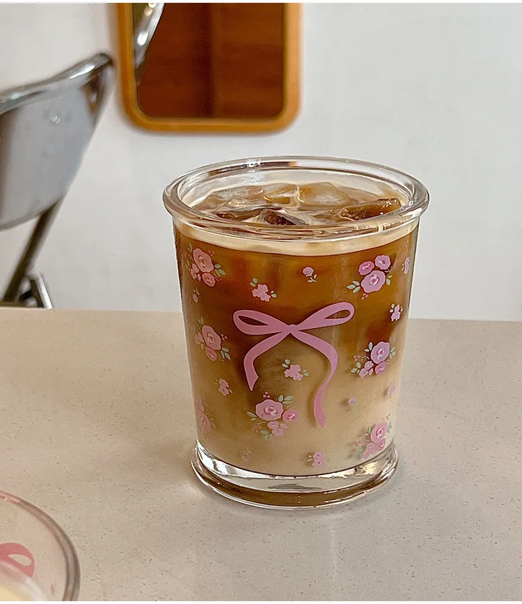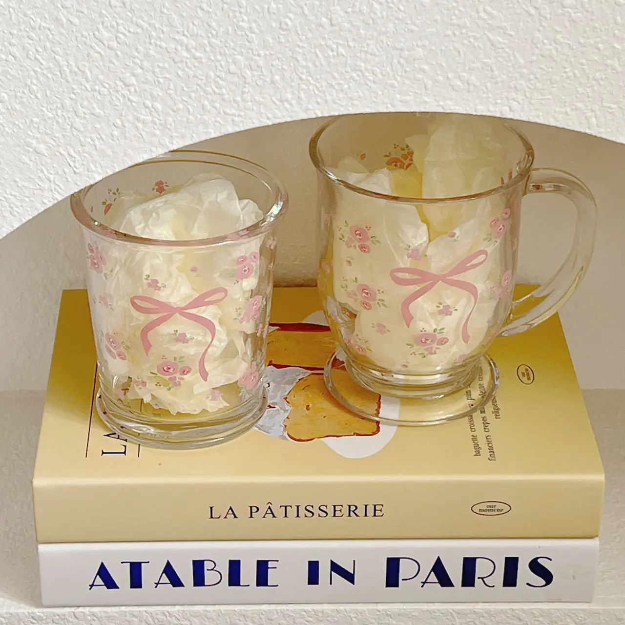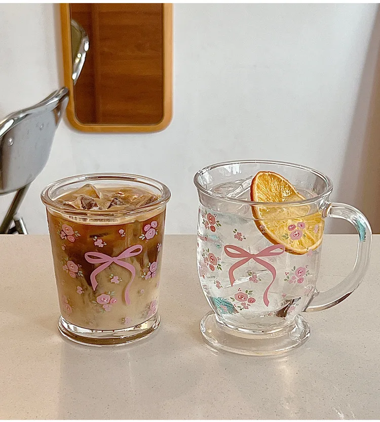 Kawaii Bowknot Glass Cups Bow Knot Rose Glass Milk Cup Fragmented Flowers