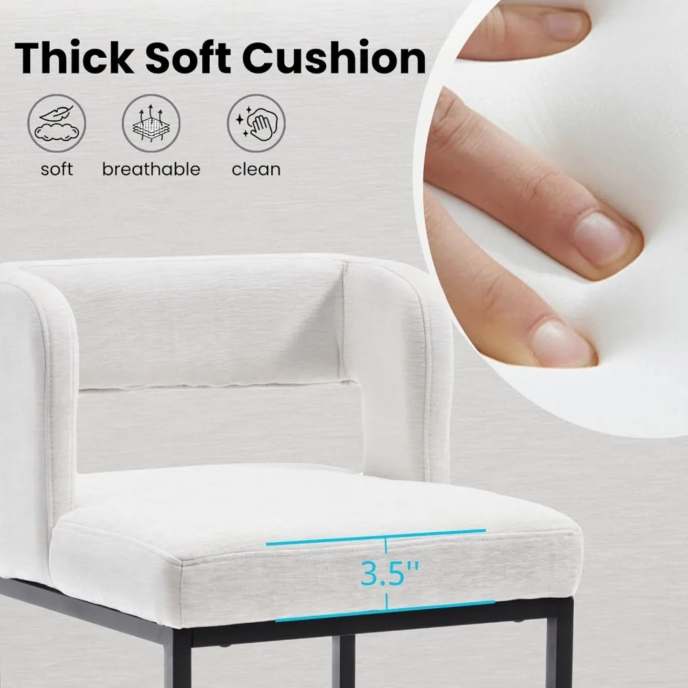 - THICK CUSHION AND SOFT BACK: The cushion is filled with 3.5 inches thick high quality foam. and the backrest is also filled with soft foam. when you sit on the bar stools. you will have a cozy and comfortable surrounding feeling. The high density upholstered seat and sturdy frame will provide you with a comfortable experience for a long time