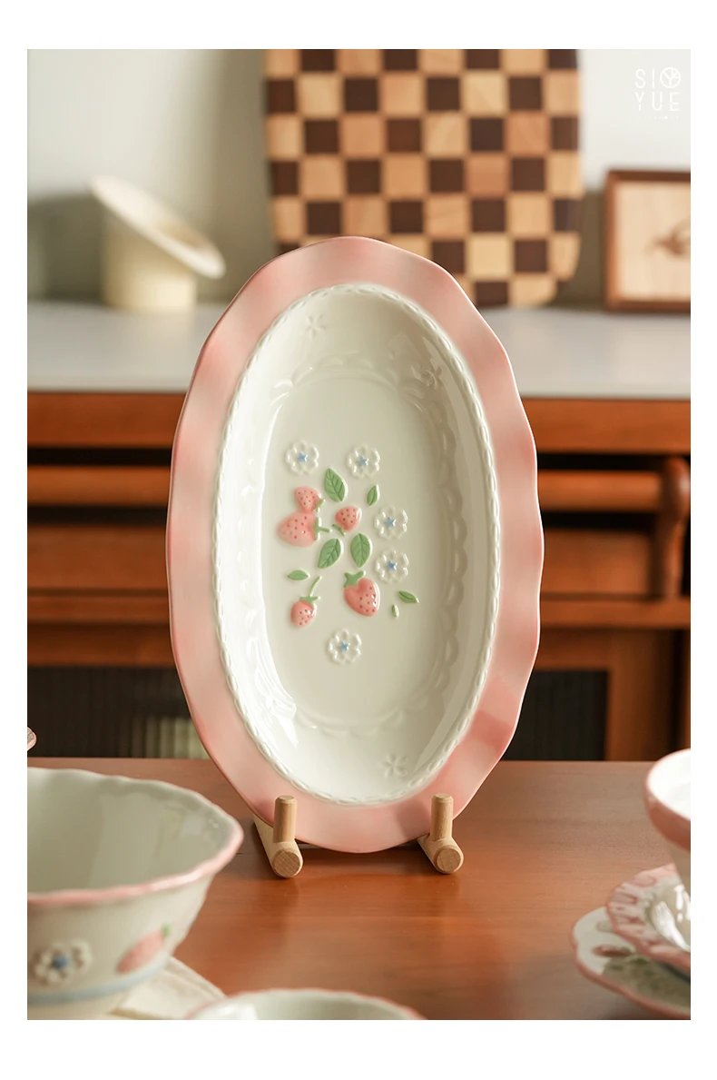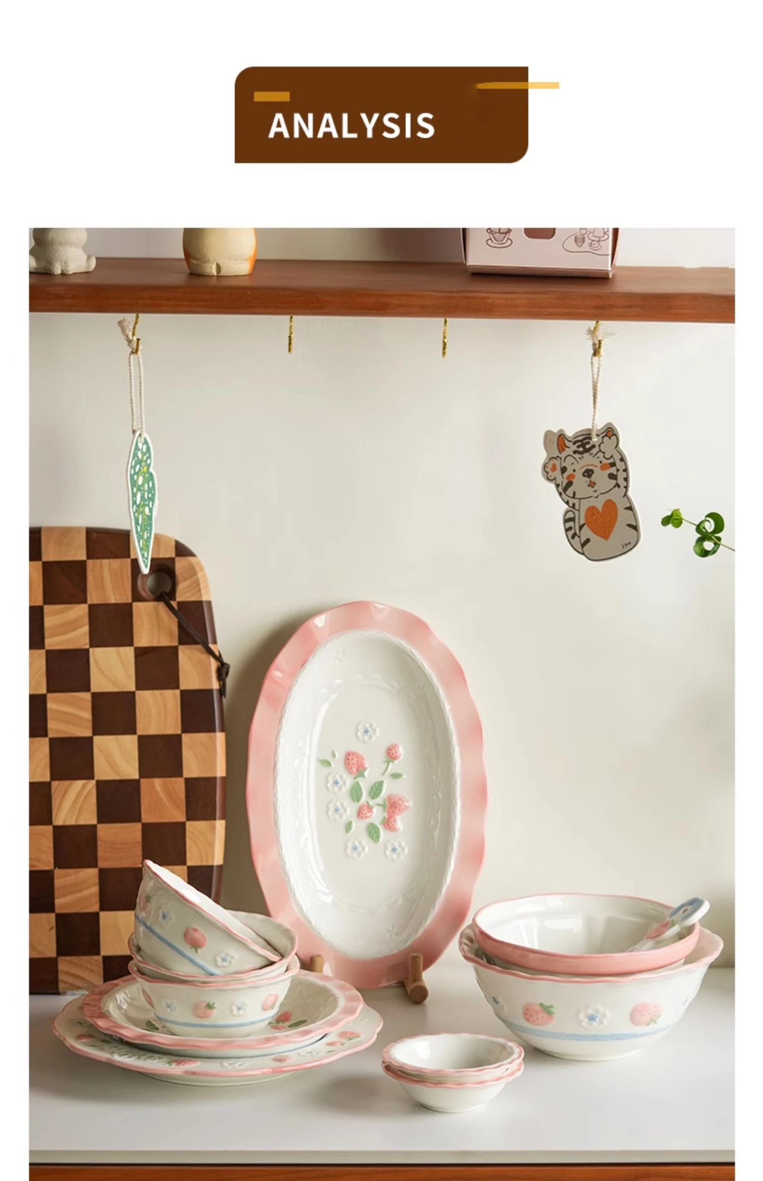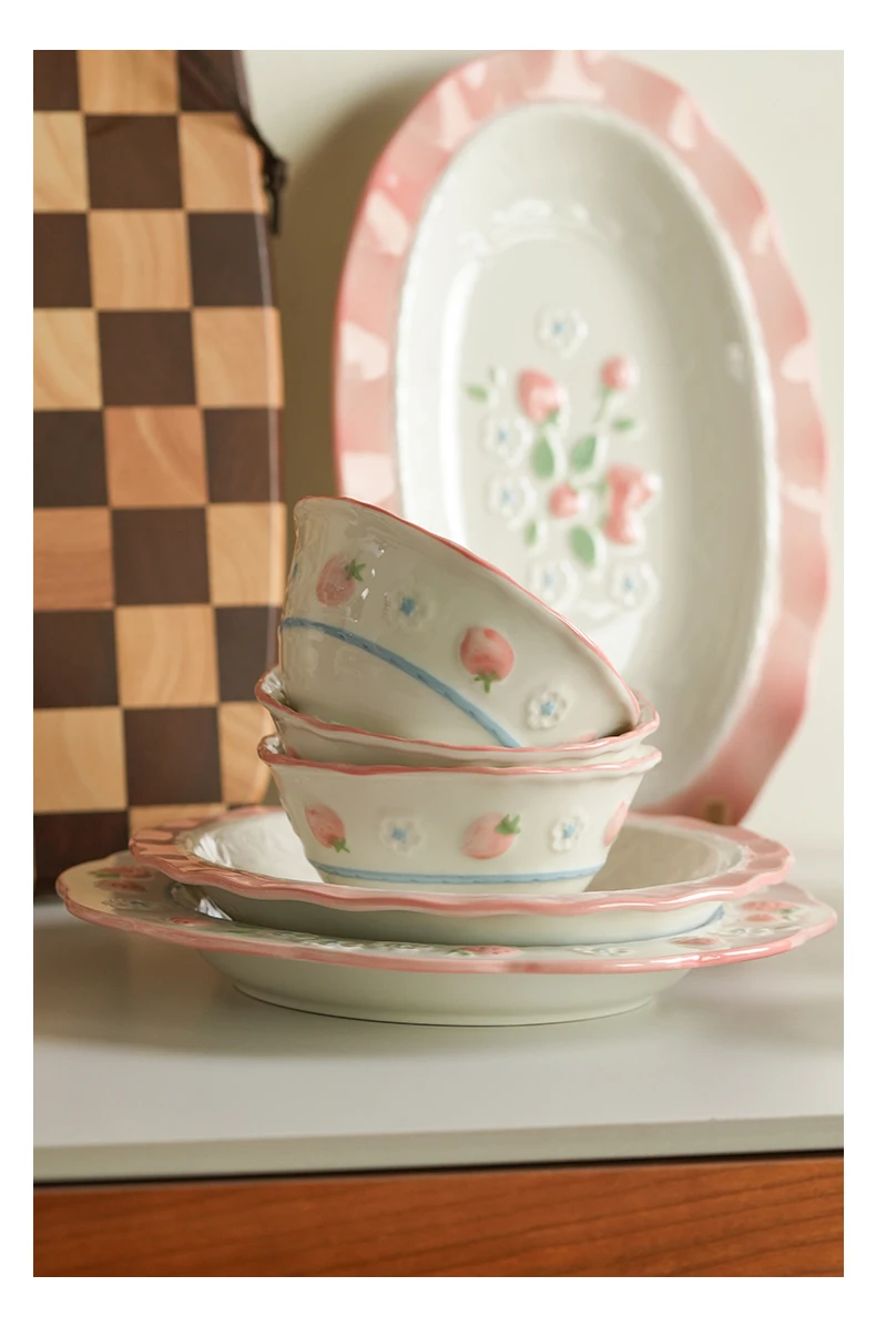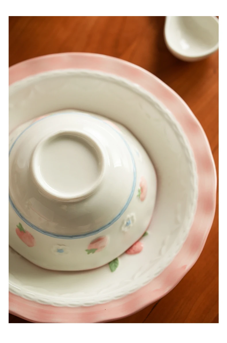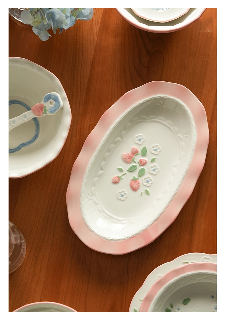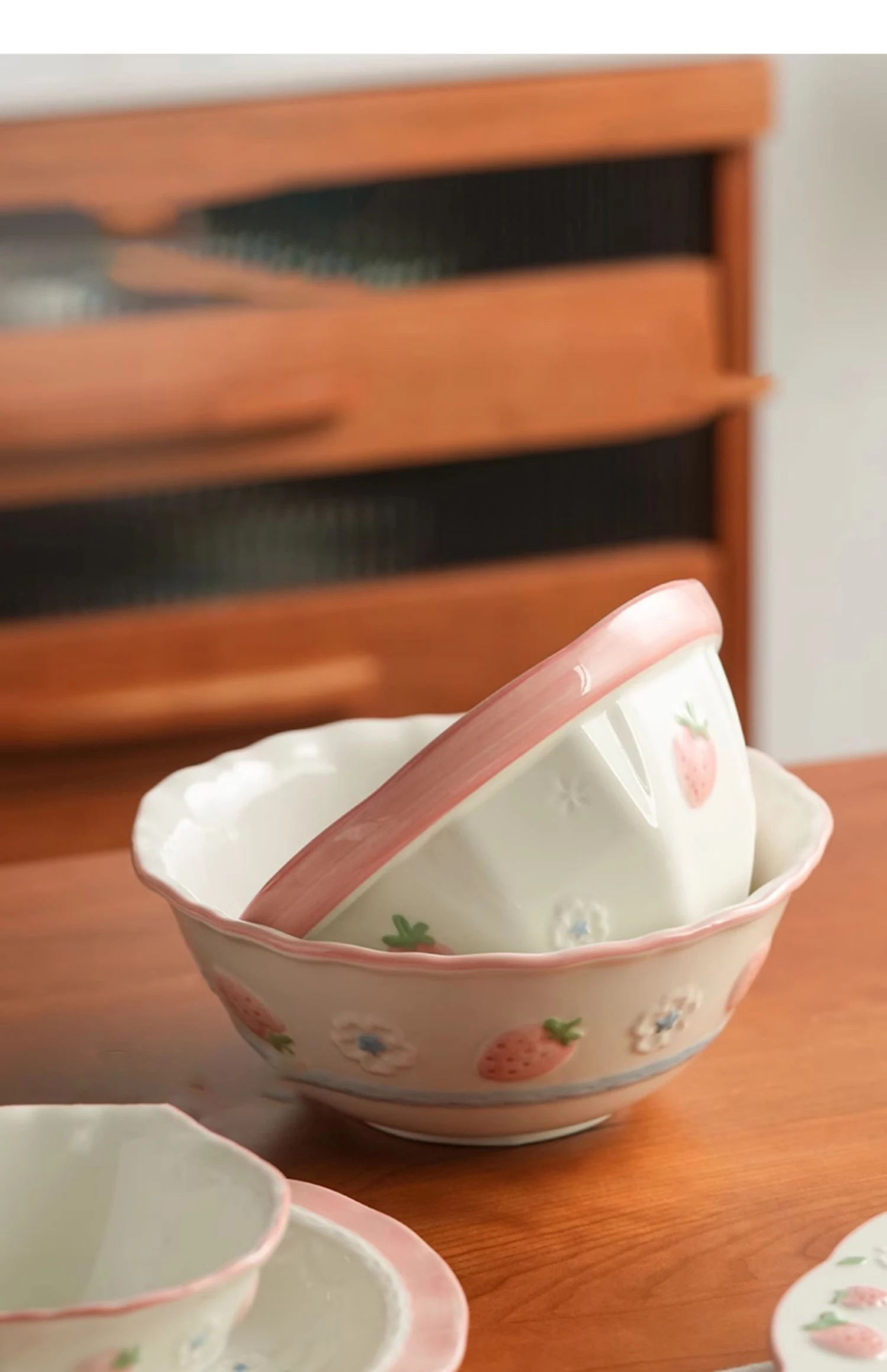 High Grade Strawberry Pattern Cute Girl Plate Bowl