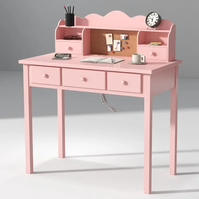 Home Office Furniture Writing Desk.Computer Work Station with Detachable Hutch.5 Drawers(Pink)