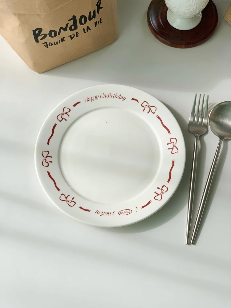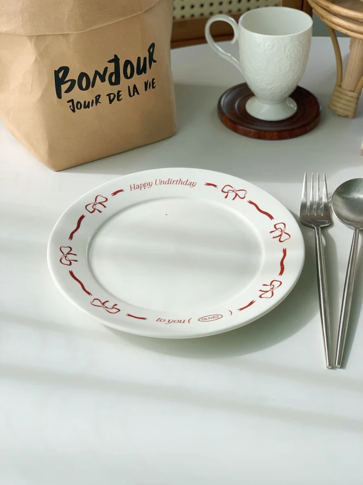 Pink Bow Ceramic Dessert Plate French Vintage Hand-painted Dish