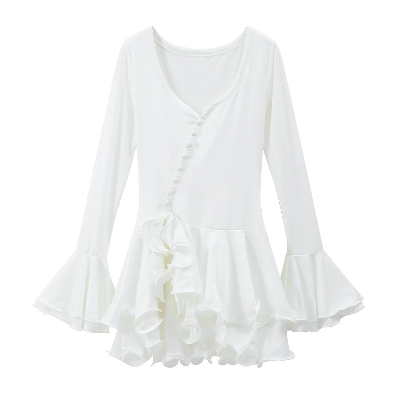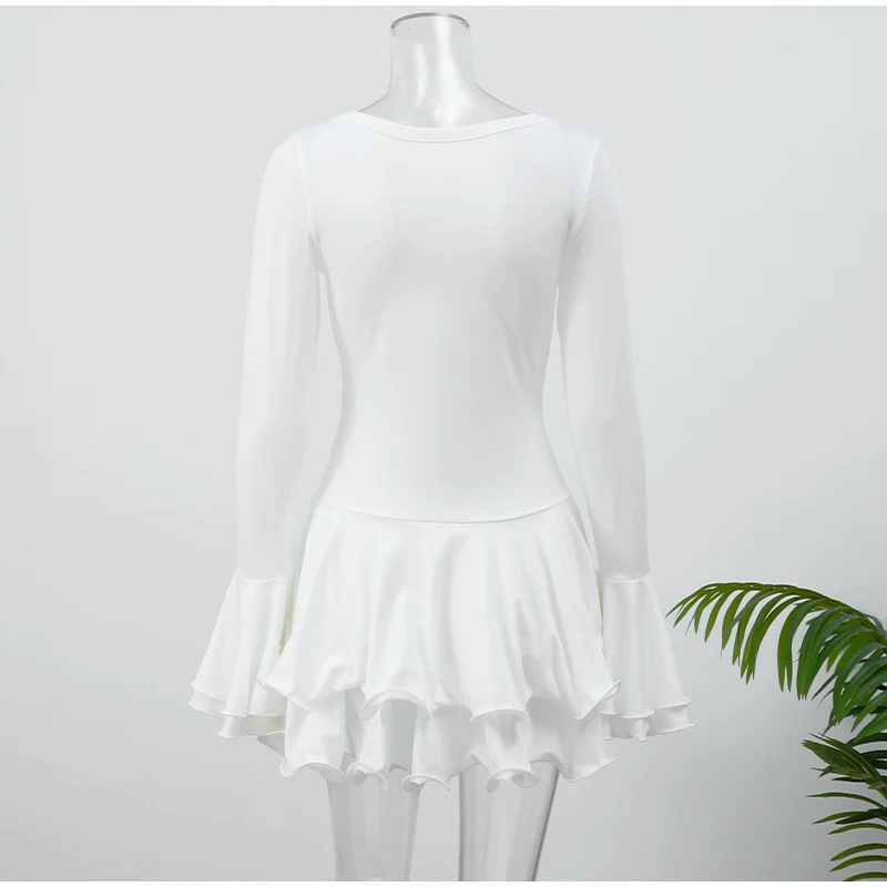 Model Number: Pink Flare Sleeve Ruffle Pleated Mini Dress