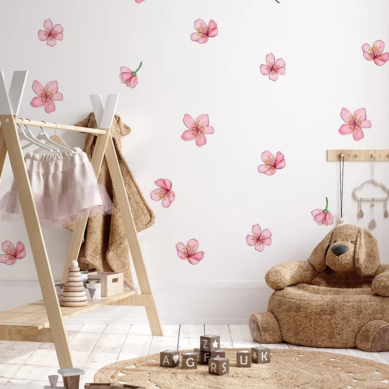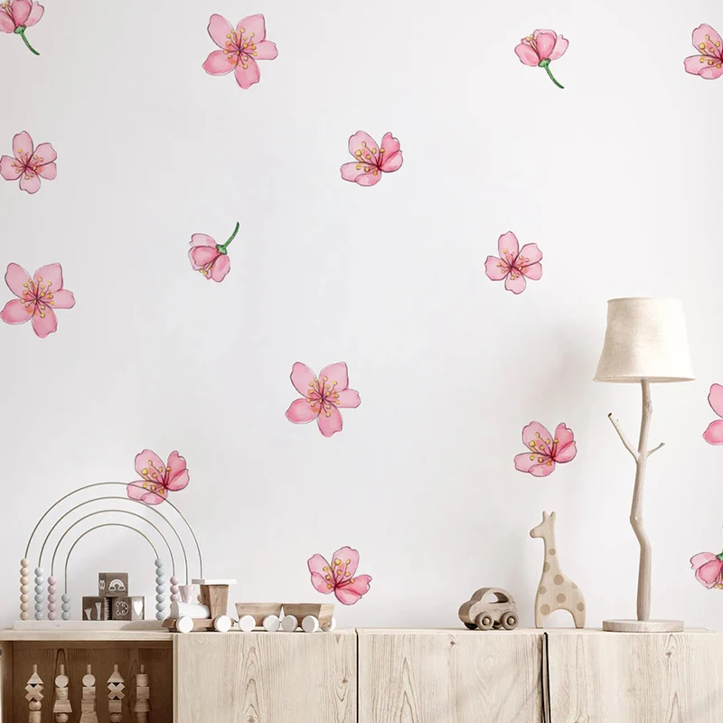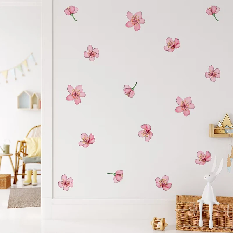 Pink Sakura Wall Stickers for Home Decoration for Girls Bedroom Living Room Plant Flowers Wall Decals DIY Wall Art Wallpaper