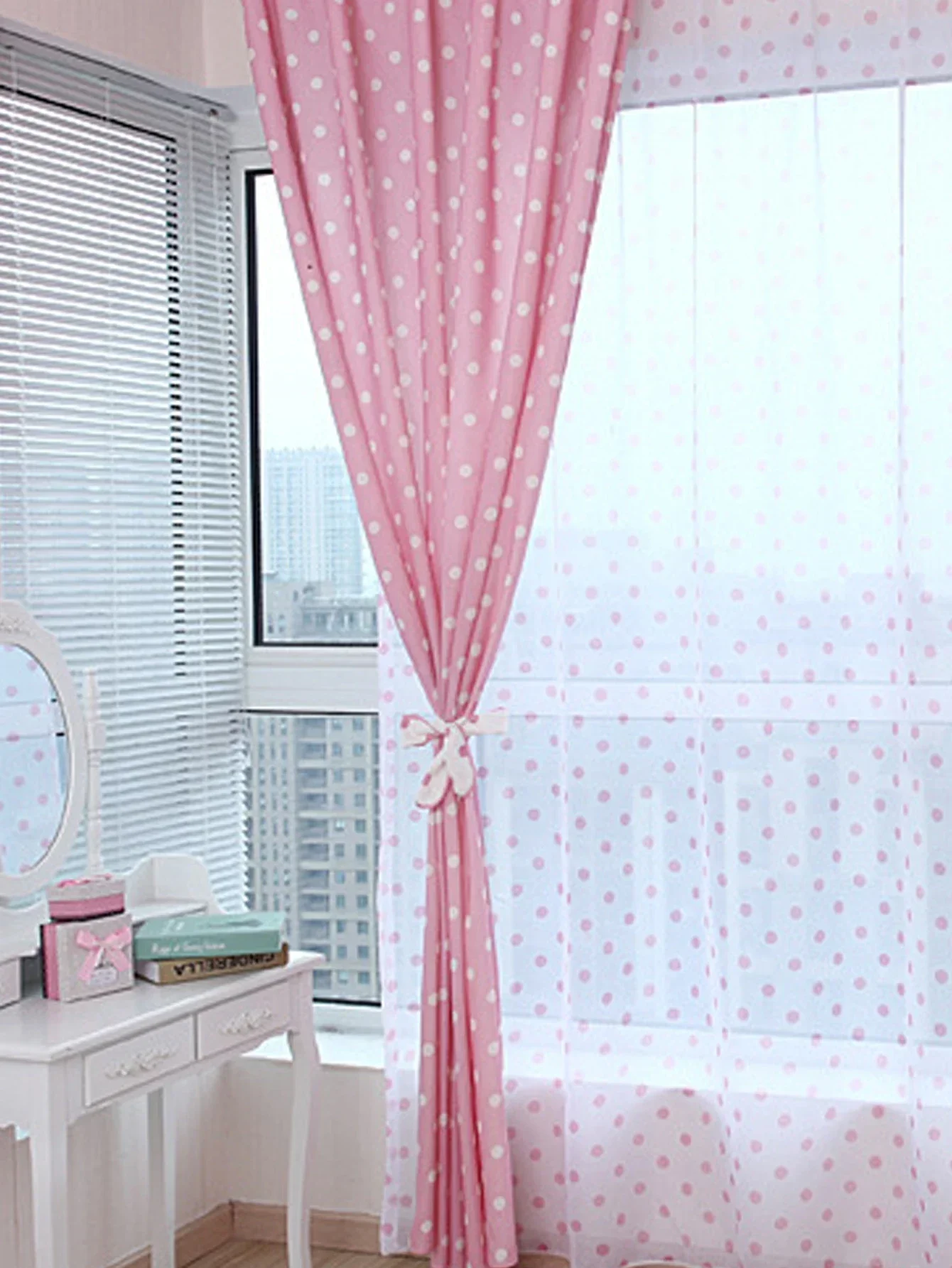Pink White Polka Dot Curtain Style Round Dot Curtain Living Room Bedroom