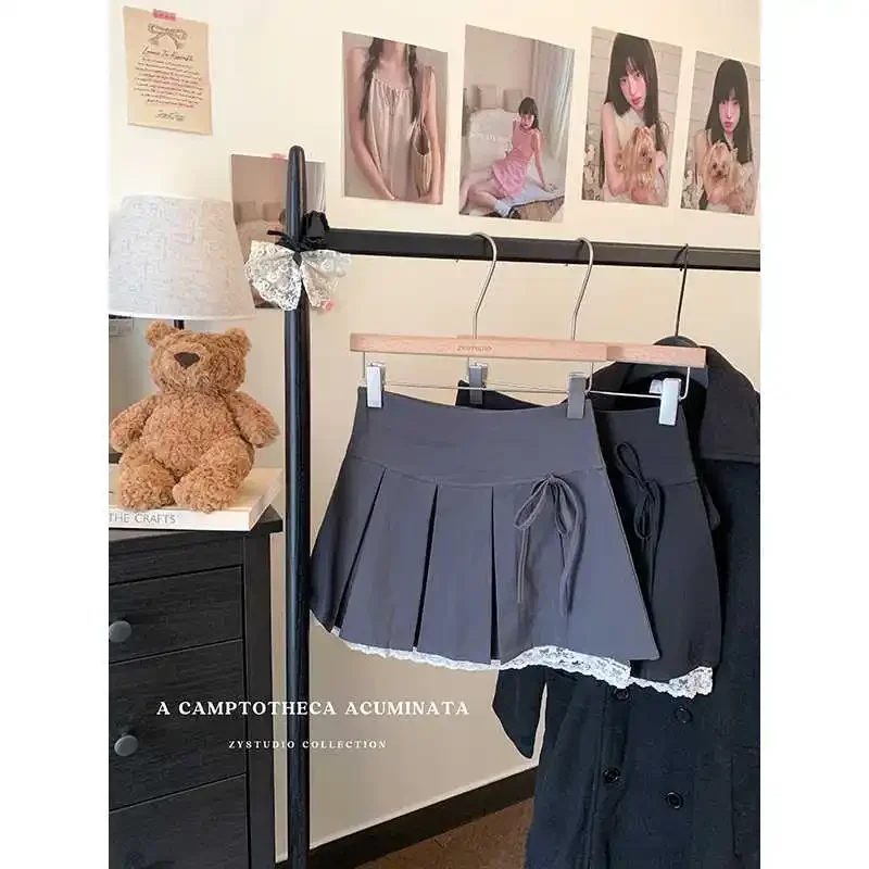 �Lace Stitching Detail : The intricate lace stitching detail enhances the skirt's aesthetic appeal. offering a sophisticated look.