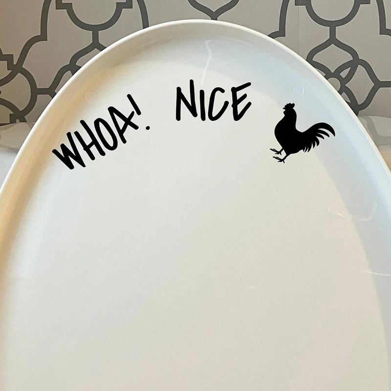 Purpose: Whoa Nice. Toilet lid Vinyl Sticker Rooster Joke Humor Bathroom Decor