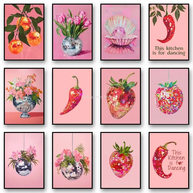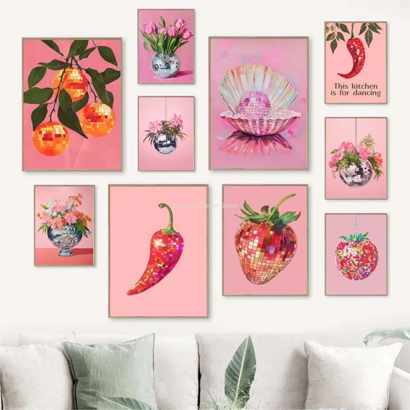 Retro Abstract Fruit Disco Ball Orange Miorrorball Creative Poster Canvas Paintings Wall Art Pictures