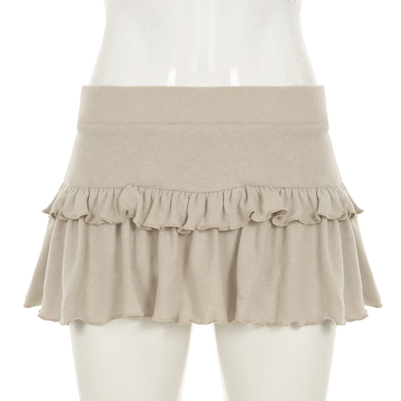 Coquette Solid Pleated Super Mini Skirt Preppy Sexy Slim Low Waist Cotton Short Skirt