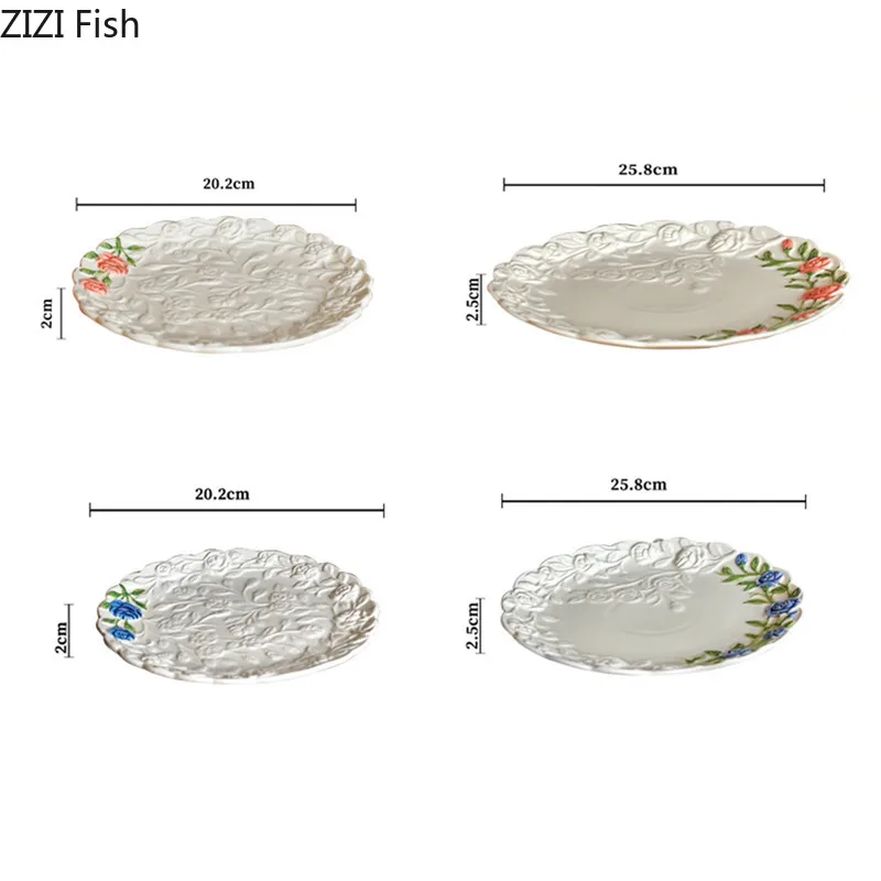 Rose Relief Ceramic Plate Wedding Party Afternoon Tea Cake Dessert Plate Restaurant Food Decoration Salad Plate Kitchen Utensils