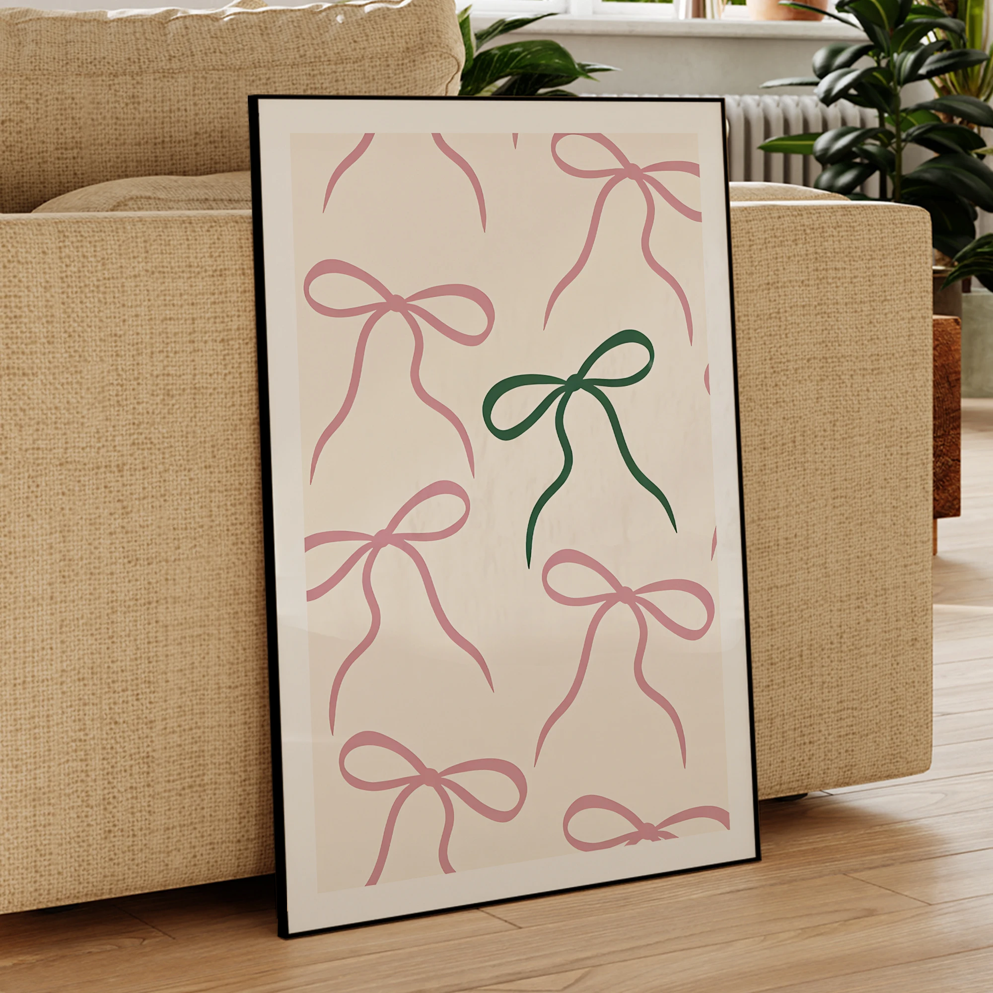 Simple Pink And Green Bow Wall Art Prints Canvas Painting Poster Picture For Living Bed Room Home Decor