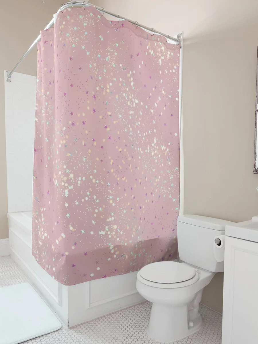 Sparkling Stars Shower Curtain Pink Pastel Decor for Bathroom