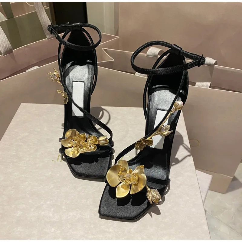 Star style Metal Flowers Women Sandals Sexy Narrow band Stiletto High heels Gladiator Sandals Summer Fashion Party Prom Shoes