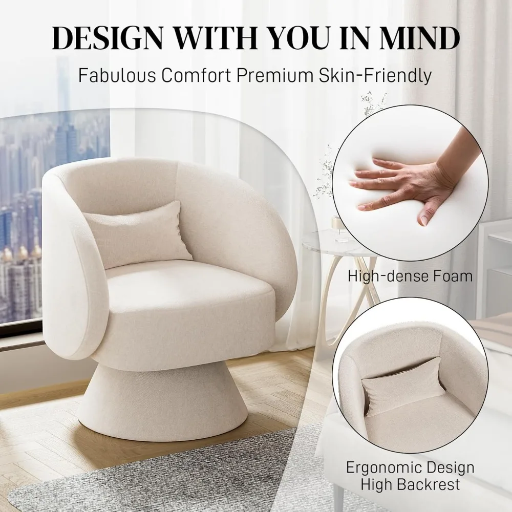 • 360 Swivel Chair: Enjoy the freedom of movement with round swivel chair. The smooth 360-degree swivel feature allows you to effortlessly turn and face any directions without moving it while chatting. watching TV. reading