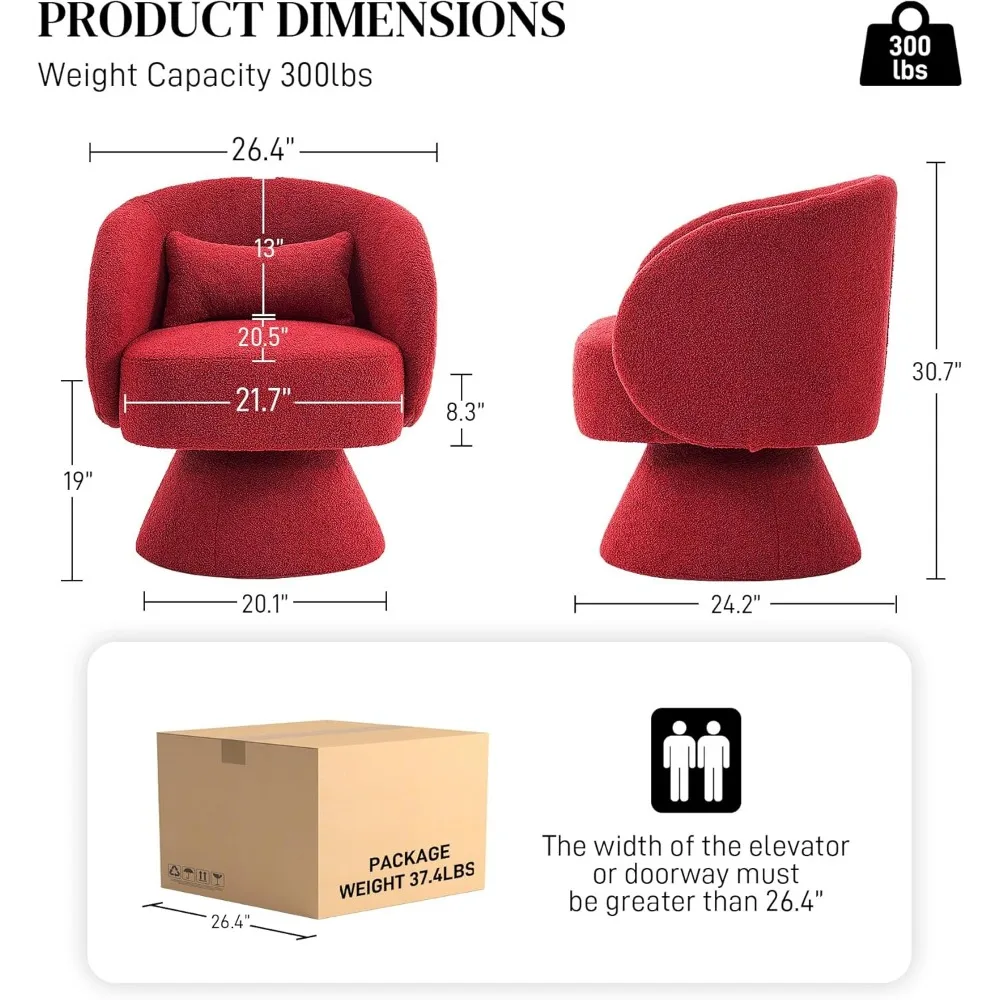 • Easy Assembly: Installation is a breeze. just attach the base to the body of the modern swivel chair and enjoy your small comfy chair. Perfect for living room. bedroom. apartment. small spaces. Product size: 26.4"Wx24.2"Dx30.7"H