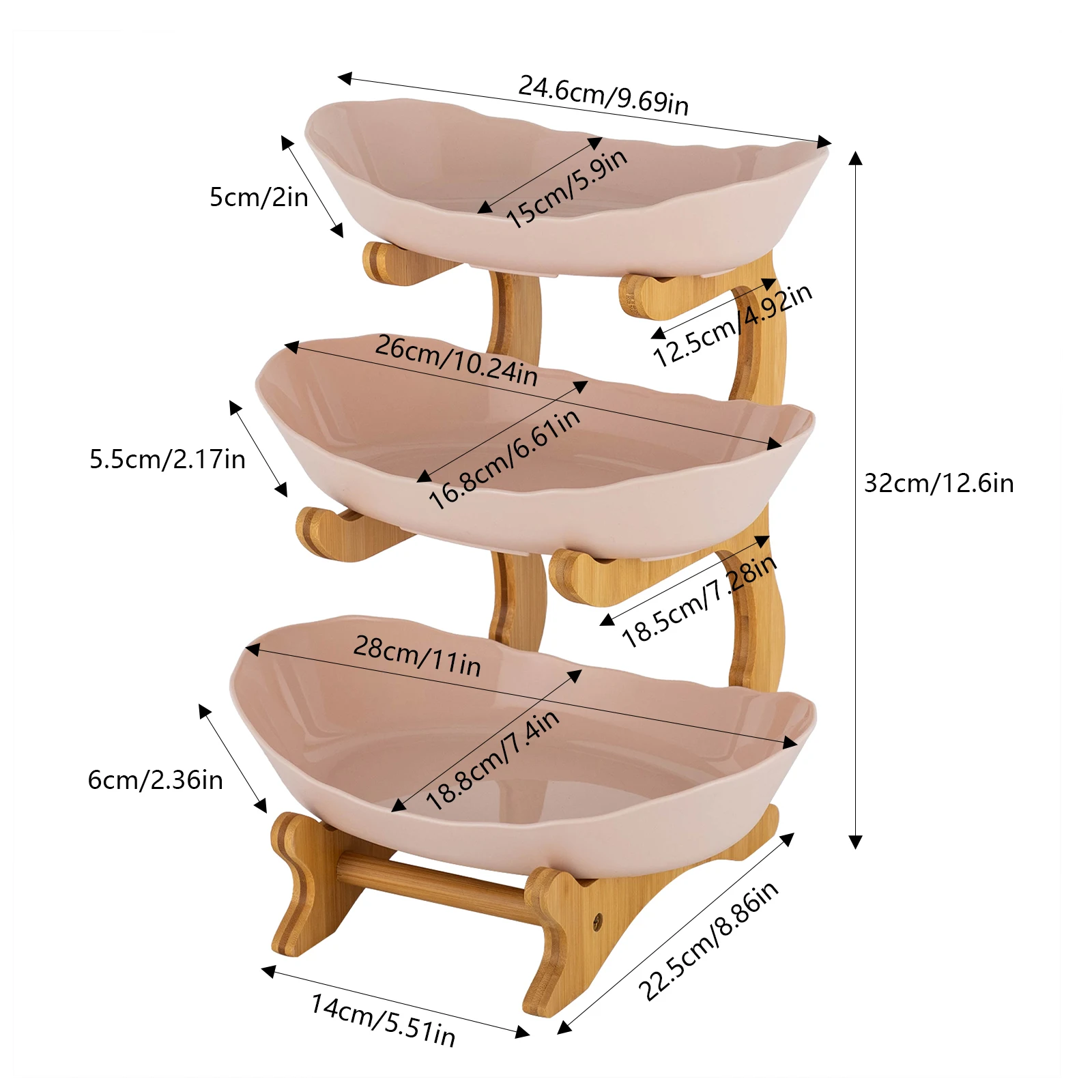 Scientific Tiering: Three different sizes of fruit plate layered design is convenient for different fruits or snacks classification. both beautiful and hygienic. avoiding the food between each other string flavor.
