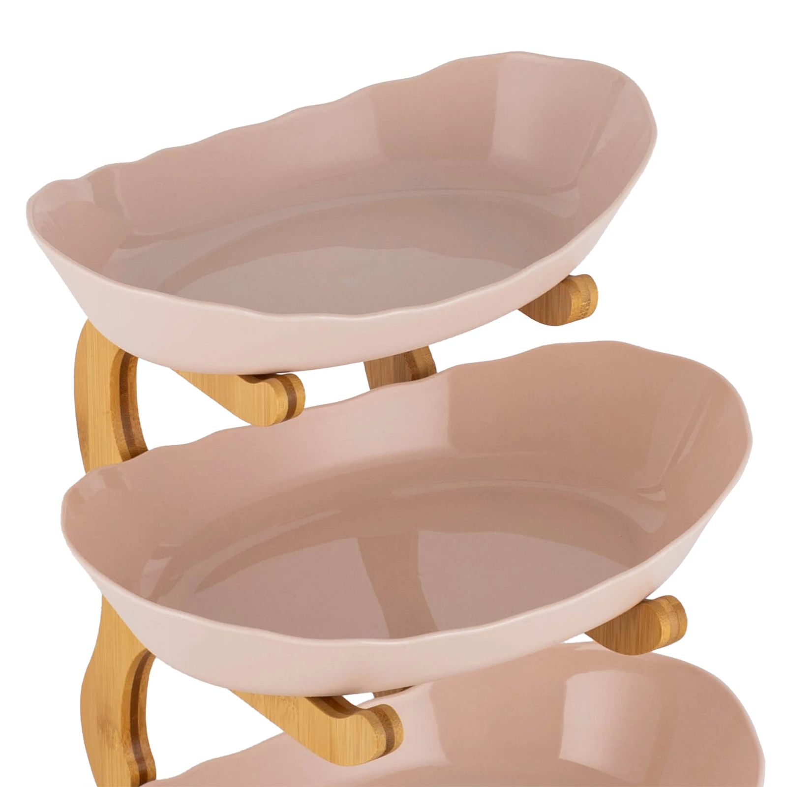 In the pursuit of a natural and healthy modern life. we have carefully designed a three-tier food-grade PP fruit bowls with bamboo wood stand that blend traditional aesthetics with modern materials. It is not only a practical home accessory. but also a work of art on the dining table. adding a touch of freshness and peace of mind to your family gatherings or daily leisure time.