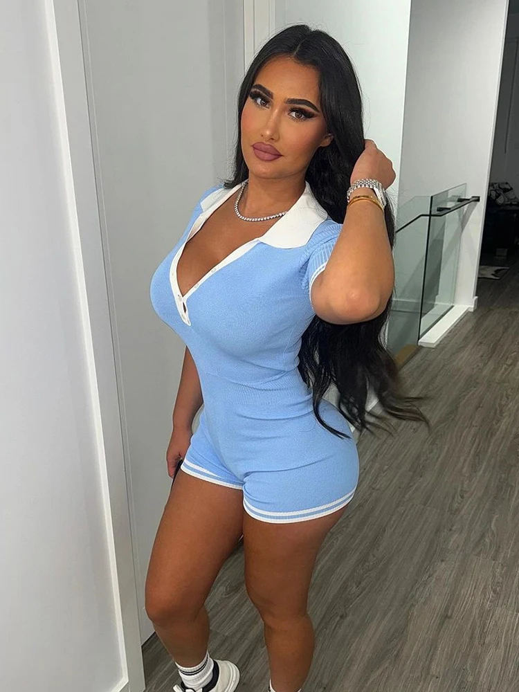 Women Romper Single-Breasted Polo Neck Shorts Sleeve Summer Simple Streetwear Sporty Activity Fitness Playsuit