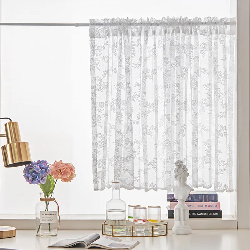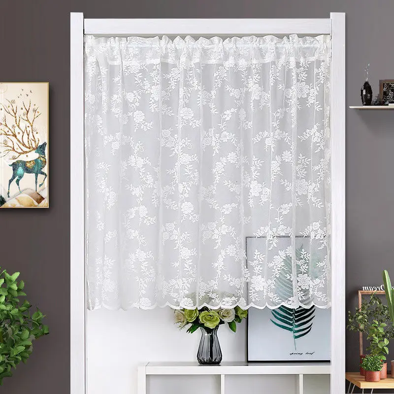 White Flower Lace Short Curtains with Wavy Lace Half Curtain